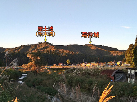 湯谷城所在地(国土地理院地図へ) 湯谷城は雷土城(板木城)と同じ稜線上にあり、 遺構の構造と規模から雷土城の支城と言える。 湯谷城主郭部分にある解説板。 湯谷城主郭様子。 高い木はなく、周辺も1m程度の草藪に覆われている。 しかしこの辺りは急に崖になっていたりするので注意。 草藪に覆われていてもハイキング道があるので、 城全体を見る事自体は割と簡単である。 湯谷城の鳥観図風お絵描き。 主郭南の三連堀切は「六日町町史資料編第1巻」の図を参照させてもらった。 曲輪と呼べそうなエリアは主郭とその北東方向の曲輪のみで、 ほとんどが痩せ尾根で、堀切を執拗に掘っている。 これは籠城する城というより普段は物見として活用し、 有事には敵兵の侵攻を妨げる為の城と言える。 |