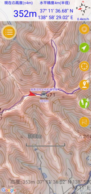 苗場山城所在地(国土地理院地図へ)